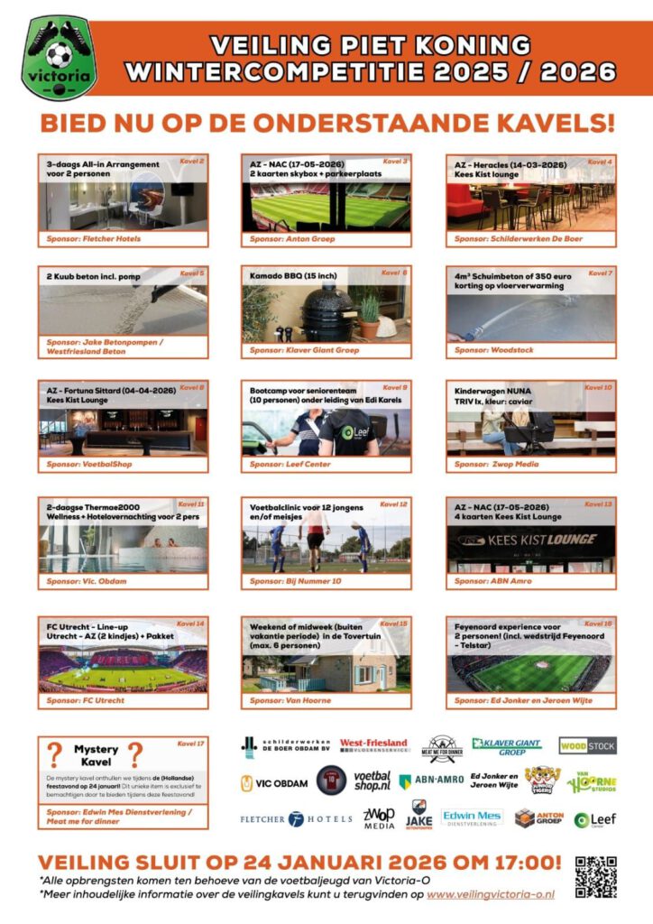Vanmiddag om 17:00 uur sluit ook de jaarlijkse veiling. Tot die tijd kun jij nog mee bieden op onderstaande unieke kavels! Neem een kijkje via de volgende link: https://victoria-veiling.betty.app/veiling